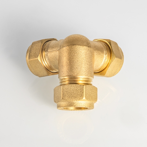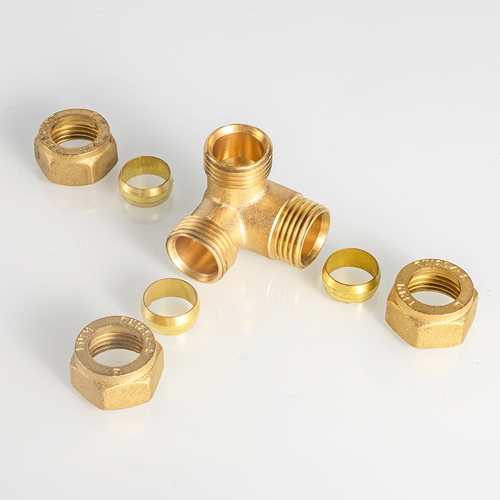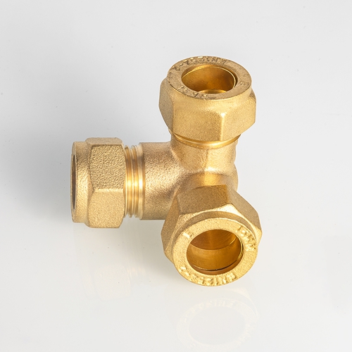 EN1254 Kovácsolt sárgaréz kompressziós kovácsolt Tee csőszerelvények sárgaréz anyag levegő Compressio cső csőszerelvény rézcsőhöz