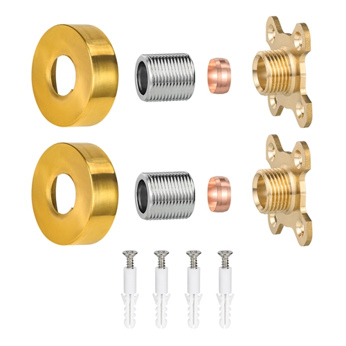 Ez a kerek zuhanyszerelő készlet fürdőszobai felszerelésre szolgál. Fő célja, hogy masszív, lapos és könnyen szerelhető alapot biztosítson a falra szerelhető csaptelepekhez. A termék a sárgaréz és a szénacél összetett szerkezetét alkalmazza: a faljal és a csaptelepekkel közvetlenül érintkező kulcsfontosságú erő- és csatlakozási részek sárgarézből állnak a hosszú távú korrózióállóság és a csatlakozás tömítettségének biztosítása érdekében; A lemeztest fő tartószerkezetként nagy szilárdságú szénacélból készül, amely biztosítja az egészhez a szükséges támasztómerevséget és megakadályozza a hosszan tartó igénybevétel miatti deformációt. A lemeztest felülete galvanizálással és más eljárásokkal kezelt, aranyszínű megjelenésű és könnyen tisztítható. Szabványos négyzetnek tervezték, előre beállított beépítési furattal, hogy illeszkedjen a szokásos csaptelep-tartozékokhoz és egyszerűsítse a telepítési folyamatot.