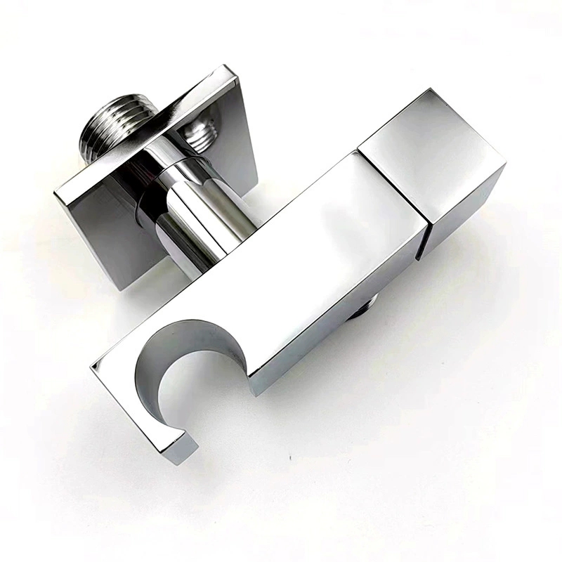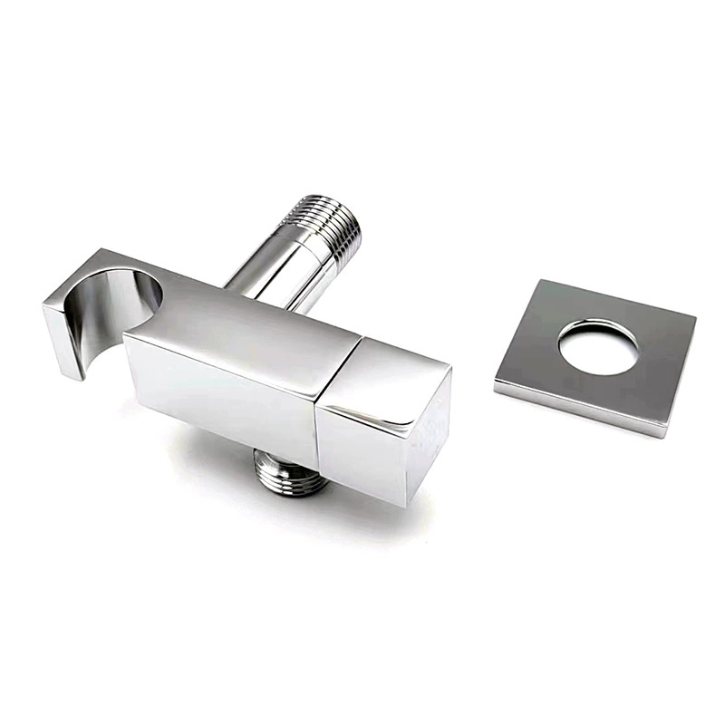 Vastagított tömör sárgaréz négyszögletes szögletes szelep zuhanytartóval, 1/2"-es egyenes elzáró szelep bidé spray-hez és kézi zuhanyhoz, fürdőszobai vízvezeték-szerelvény