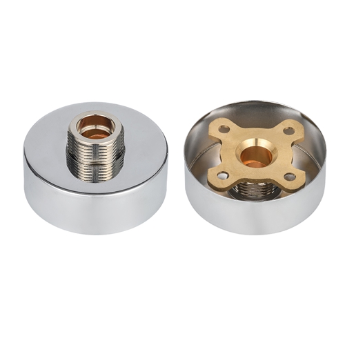 Ez a kerek zuhanyszerelő készlet fürdőszobai felszerelésre szolgál. Fő célja, hogy masszív, lapos és könnyen szerelhető alapot biztosítson a falra szerelhető csaptelepekhez. A termék a sárgaréz és a szénacél összetett szerkezetét alkalmazza: a faljal és a csaptelepekkel közvetlenül érintkező kulcsfontosságú erő- és csatlakozási részek sárgarézből állnak a hosszú távú korrózióállóság és a csatlakozás tömítettségének biztosítása érdekében; A lemeztest fő tartószerkezetként nagy szilárdságú szénacélból készül, amely biztosítja az egészhez a szükséges támasztómerevséget és megakadályozza a hosszan tartó igénybevétel miatti deformációt. A lemeztest felülete galvanizálással és más eljárásokkal kezelt, aranyszínű megjelenésű és könnyen tisztítható. Szabványos négyzetnek tervezték, előre beállított beépítési furattal, hogy illeszkedjen a szokásos csaptelep-tartozékokhoz és egyszerűsítse a telepítési folyamatot.